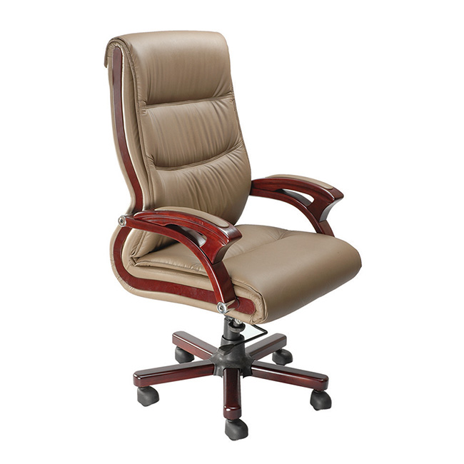 High Back Chair, Wooden Arm, Gaslift, Wooden Base, Leathrite Tapestry