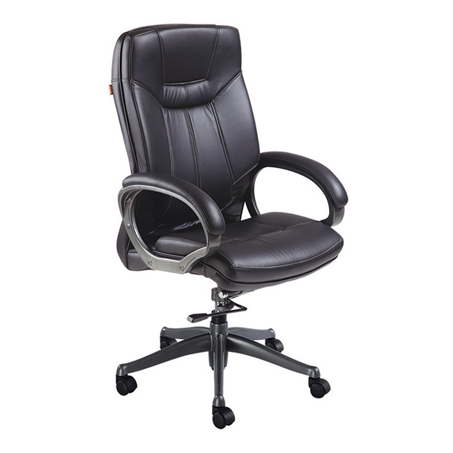 High Back Chair, Cussion Arm, Gaslift, Powder Coated Metal Base, Leathrite